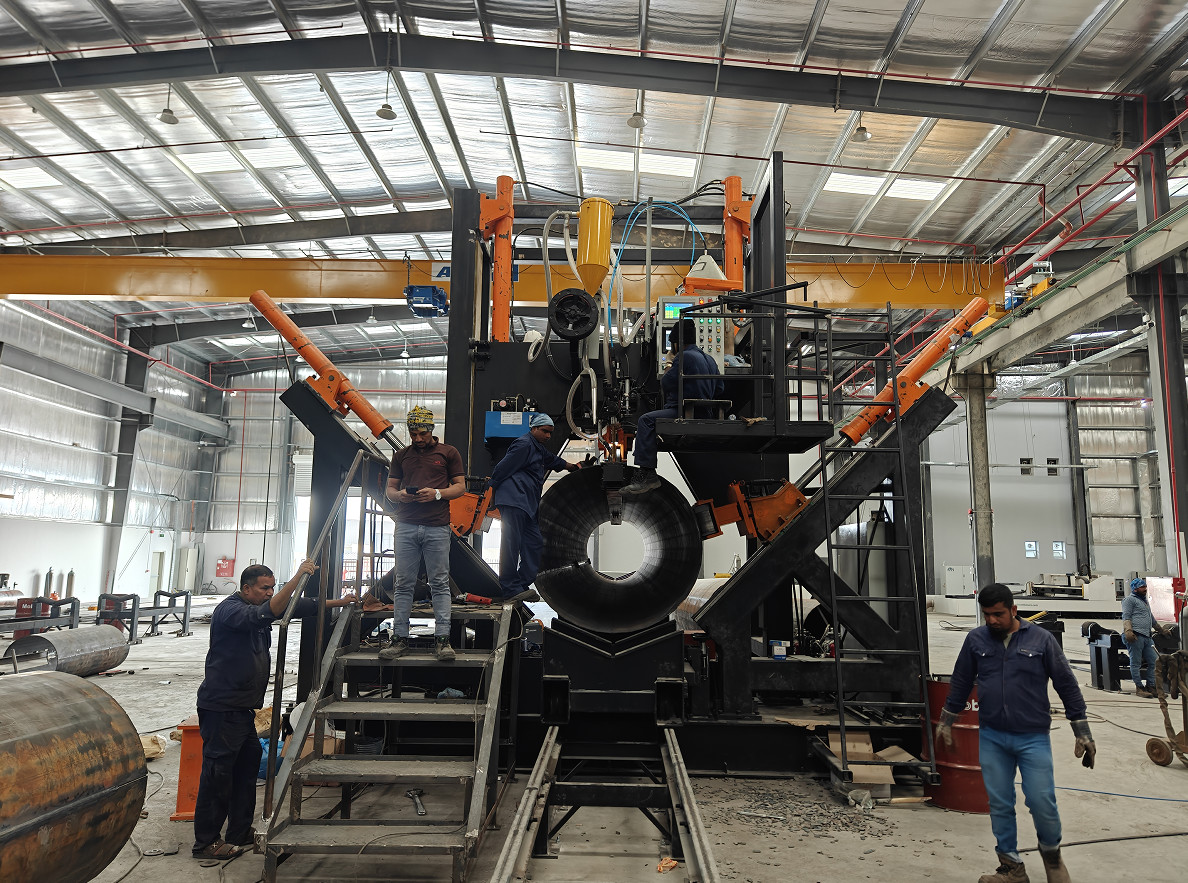 HIGHMAST POLE SHUT-WELDING MACHINE, nó phù hợp với một vỏ hoặc hai vỏ loại đa giác và vòng tròn coni trương. nó là dây chuyền hàn tự động,cấu trúc kiểu gantry được cố định và có hệ thống hàn, trolley chiều dài cột đầy đủ với động cơ SERVO để điều chỉnh tốc độ di chuyển, Các xi lanh thủy lực đẩy bánh xe kẹp để đóng cột và làm hàn cùng một lúc.