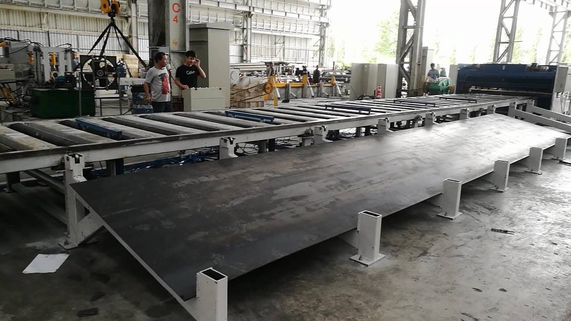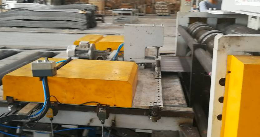 Wkhi tấm đạt đến phía trước của đơn vị cắt, tấm sẽ được dừng lại, thiết bị này sẽ tăngđĩa, để con dolly có thể kẹp và di chuyển tấm.