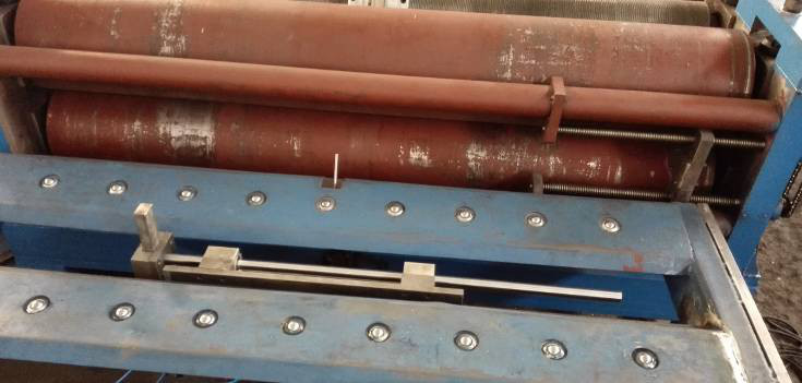 Cả trên xe dolly và trong front cạnh cắt đơn vị, có thiết bị khí nén cho đĩa đẩy để dừng lại để có được kích thước đúng của tấm hình chữ nhật.